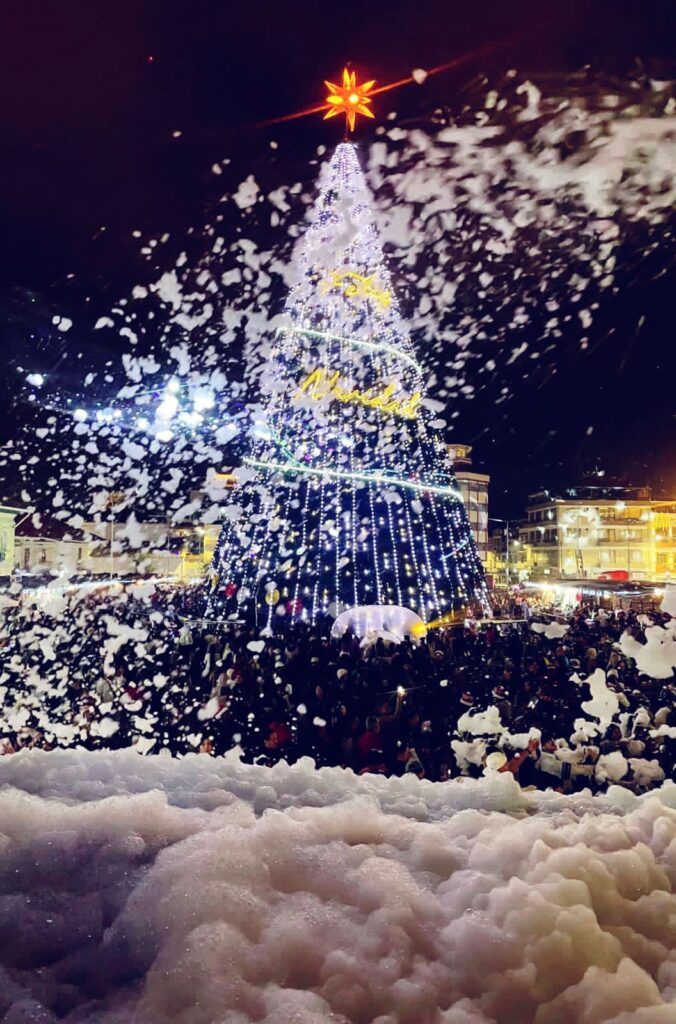 Los niños disfrutaron con los Cañones de nieve y burbujas, creando un ambiente mágico y navideño